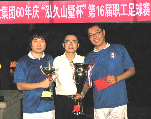 25日17時(shí),季軍爭(zhēng)奪戰(zhàn)在四分公司和六分公司之間展開(kāi),海川集團(tuán)吳鑫董事長(zhǎng)也親臨比賽現(xiàn)場(chǎng)為隊(duì)員們加油助威。在經(jīng)過(guò)50分鐘的激烈爭(zhēng)奪后,由于雙方都過(guò)于重視防守,比賽以0:0的比分戰(zhàn)平進(jìn)入點(diǎn)球賽,半決賽失手點(diǎn)球戰(zhàn)的六分公司隊(duì),這次顯示出了較好的腳法,以3:0戰(zhàn)勝四分公司隊(duì)獲得季軍。晚上18時(shí)許,總部足球隊(duì)與二分公司隊(duì)之間的決賽正式開(kāi)始,比賽中雙方顯示出昂揚(yáng)的斗志,積極拼搶,嚴(yán)密防守,上半場(chǎng)雙方戰(zhàn)成平手,在下半場(chǎng)比賽中,趁著對(duì)手體力下降之機(jī),總部足球隊(duì)的李寧和尹熙文各抓住一次機(jī)會(huì)破門,最終以2:0獲得冠軍。