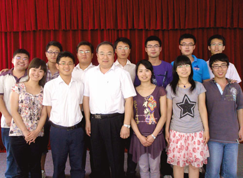 座談會最后,吳總做了總結(jié)講話,他說,我們成立“海川建設(shè)校園俱樂部”的目的是為了以這樣一種方式為社會造就最優(yōu)秀的人才,讓俱樂部會員成為職場精英,俱樂部為學(xué)生提供一個造就自我的平臺,同時也是俱樂部會員們快樂渡過大學(xué)生活的一個平臺,塑造一個實(shí)現(xiàn)人生價值的平臺。同時吳總用自己“老馬自知夕陽晚,不需揚(yáng)鞭自奮蹄”的人生進(jìn)取精神勉勵同學(xué)們,鼓勵同學(xué)們要趁著年輕的美好時光,不斷去學(xué)習(xí)充實(shí)自己,盡可能的使自己的知識水平提升一個臺階。并勉勵大家在以后的人生道路上,要踏實(shí)做好自己的事情,善于思考、鉆研,爭取把自己的工作做到完美;要給自己制定目標(biāo),并向著這個目標(biāo)努力工作。同時邀請同學(xué)們在2012年海川集團(tuán)成立60周年的時候,再“回家”來看看。座談會后,吳總與大家合影留念。