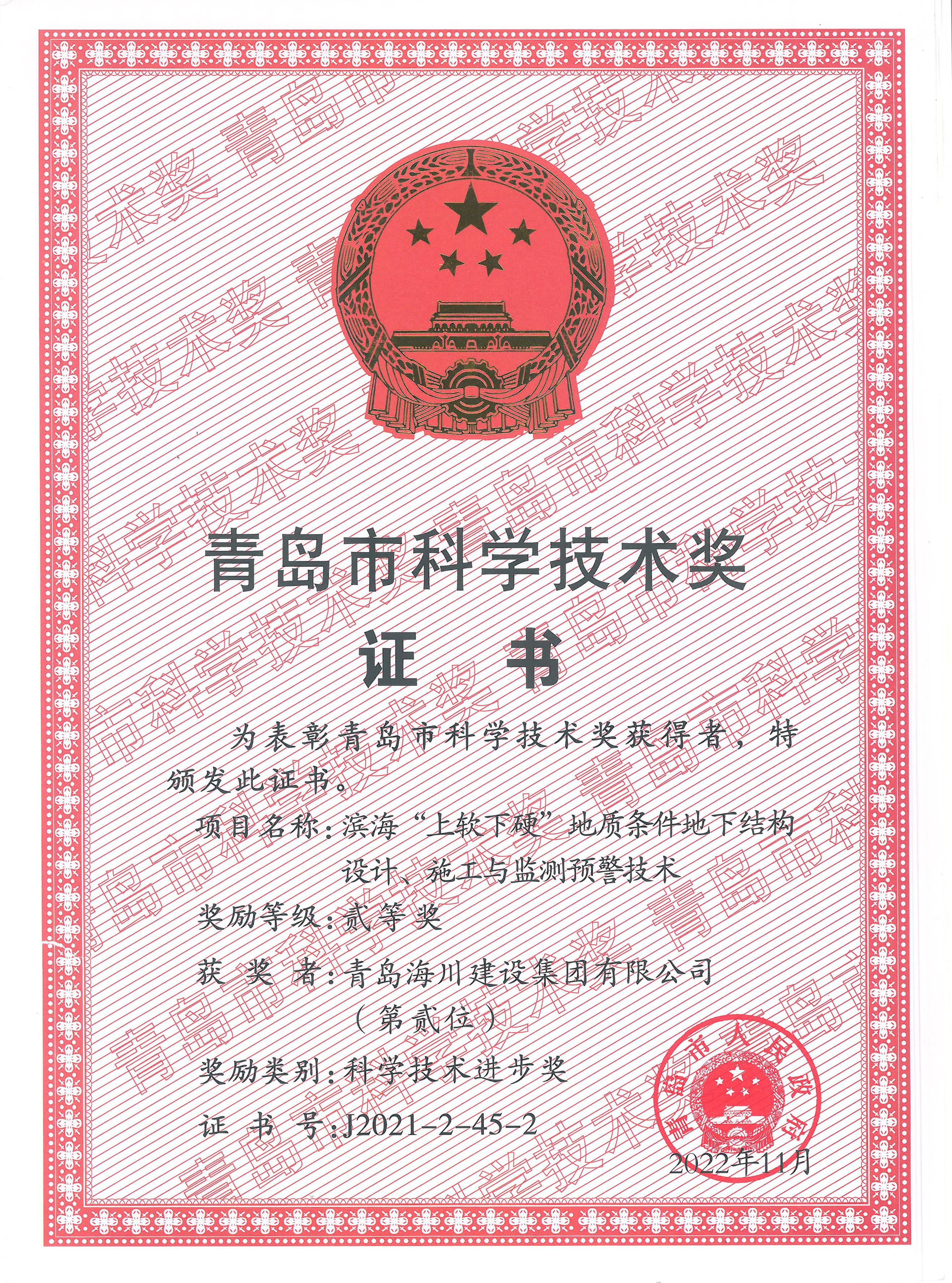 海川集團(tuán)榮獲青島市科學(xué)技術(shù)獎(jiǎng)2023-03-06近日,集團(tuán)公司領(lǐng)回了“青島市科學(xué)技術(shù)獎(jiǎng)”榮譽(yù)證書(shū)。經(jīng)青島市市科學(xué)技術(shù)獎(jiǎng)勵(lì)評(píng)審委員會(huì)評(píng)審、青島市市科學(xué)技術(shù)獎(jiǎng)勵(lì)委員會(huì)核定,市政府決定,由青島理工大學(xué)與青島海川建設(shè)集團(tuán)有限公司聯(lián)合申報(bào)的《濱?!吧宪浵掠病钡刭|(zhì)條件地下結(jié)構(gòu)設(shè)計(jì)、施工與監(jiān)測(cè)預(yù)警技術(shù)》獲得科學(xué)技術(shù)進(jìn)步獎(jiǎng)二等獎(jiǎng)。課... -