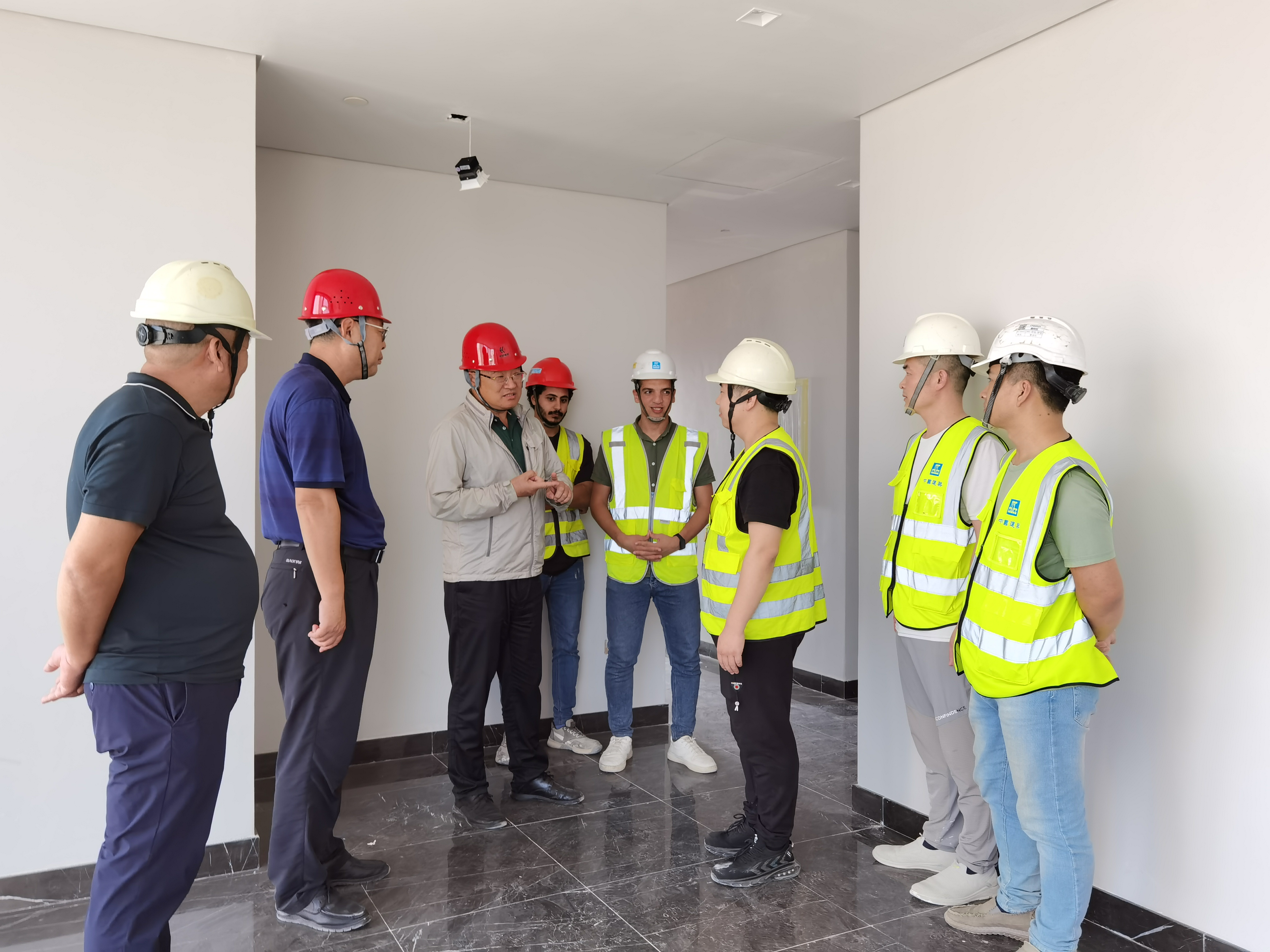 助力共建“一帶一路”高質(zhì)量發(fā)展 董事長(zhǎng)吳鑫一行走訪慰問(wèn)華聯(lián)建科埃及項(xiàng)目部2023-11-3011月2日,青島海川建設(shè)集團(tuán)黨委書(shū)記、董事長(zhǎng)吳鑫一行來(lái)到埃及新行政首都中央商務(wù)區(qū)項(xiàng)目,走訪了由海川建設(shè)旗下華聯(lián)建筑科技集團(tuán)(青島)有限公司負(fù)責(zé)裝修的D02樓棟,現(xiàn)場(chǎng)查看了施工完成情況,聽(tīng)取項(xiàng)目部的工作匯報(bào),對(duì)項(xiàng)目下一步竣工工作做出安排,并對(duì)施工人員發(fā)放慰問(wèn)品,勉勵(lì)項(xiàng)目積... -