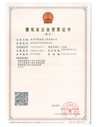 2017年4月,青島華聯(lián)裝飾工程有限公司傳來佳訊,其申報(bào)的電子與智能化工程專業(yè)承包貳級(jí)和建筑幕墻工程專業(yè)承包貳級(jí)增項(xiàng)資質(zhì)雙雙成功獲批。