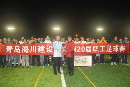 本屆比賽同時(shí)還評選出三項(xiàng)個(gè)人獎(jiǎng)項(xiàng),冠軍隊(duì)成員莫小飛榮獲“最佳射手獎(jiǎng)”,總部隊(duì)成員路海鵬榮獲“最佳球員獎(jiǎng)”,五分公司57歲的球員孫仁功榮獲“最受尊敬的老隊(duì)員獎(jiǎng)”。比賽結(jié)束后,吳鑫董事長親自為冠軍球隊(duì)頒發(fā)了獎(jiǎng)杯,至此,海川集團(tuán)第20屆職工足球賽圓滿落幕。海川集團(tuán)自1997年舉辦首屆足球比賽以來,每年一屆,已經(jīng)不間斷地舉辦了20屆比賽。通過舉辦足球賽事,豐富了員工的業(yè)余生活,鍛煉了體魄,弘揚(yáng)了企業(yè)文化,海川集團(tuán)職工足球賽已經(jīng)成為公司企業(yè)文化的重要部分和員工的節(jié)日,連年被評選為青建系統(tǒng)十大傳統(tǒng)賽事之一。