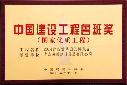由海川集團(tuán)承建的2014青島世界園藝博覽會工程榮獲2014-2015年度中國建設(shè)工程魯班獎(國家優(yōu)質(zhì)工程)。表彰大會于2015年11月16日在北京釣魚臺國賓館舉行,海川建設(shè)集團(tuán)有限公司四分公司主任工程師張棟參加了會議,并捧回中國建設(shè)工程魯班獎(國家優(yōu)質(zhì)工程)獎牌及證書。