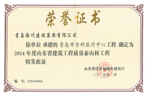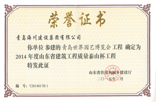 海川集團(tuán)捧回五項泰山杯證書
