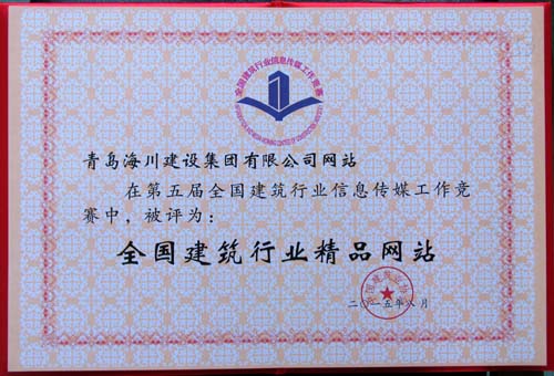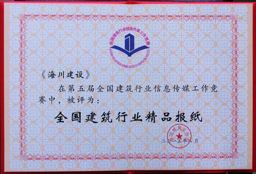 8月26日,中國建筑業(yè)協(xié)會在大連召開的全國建筑行業(yè)信息傳媒工作經(jīng)驗交流會上,向第五屆全國建筑行業(yè)信息傳媒工作競賽的優(yōu)勝者頒發(fā)了獎杯和榮譽證書。海川集團被評為“全國建筑行業(yè)信息宣傳先進(jìn)集體”,公司網(wǎng)站被評為“全國建筑行業(yè)精品網(wǎng)站”,《海川建設(shè)》企業(yè)報被評為“全國建筑行業(yè)精品報紙”,王修岐同志被評為“全國建筑行業(yè)信息宣傳優(yōu)秀工作者”。