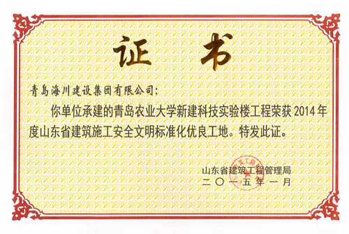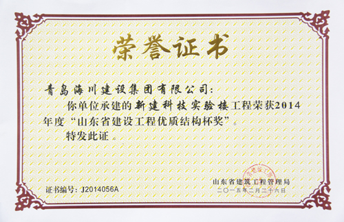 最近,七分公司青島農(nóng)業(yè)大學(xué)新建科技實驗樓工程先后從山東省建筑工程管理局捧回了分別于2015年一月和二月頒發(fā)的兩項省級榮譽(yù)證書——榮獲“2014年度山東省建筑施工安全文明標(biāo)準(zhǔn)化優(yōu)良工地”和榮獲“2014年度山東省優(yōu)質(zhì)結(jié)構(gòu)杯獎”。消息傳到工地,大家歡欣鼓舞,一年多的努力終于結(jié)出了豐碩的成果。