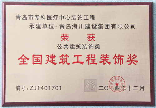 ??漆t(yī)療中心工程捧回全國建筑工程裝飾獎